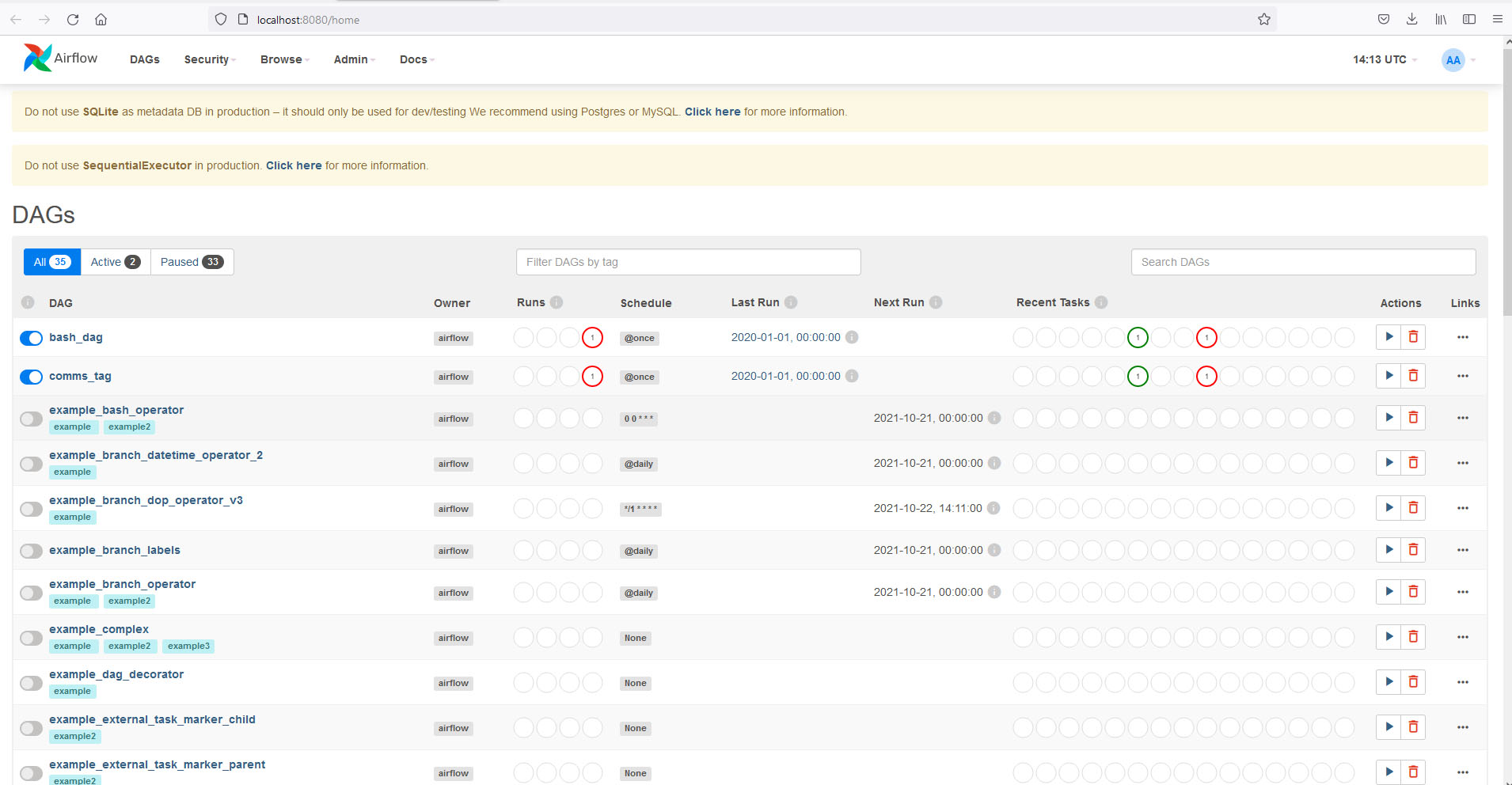 Following, are some Airflow screen shots using the latest Python scripts :